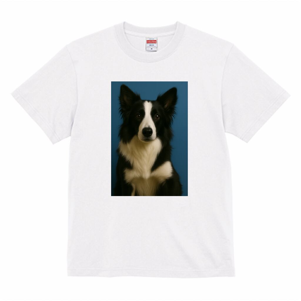 しなやかな体と賢いまなざし、圧倒的な運動能力と知性を持つボーダーコリー。ひたむきでエネルギッシュな性格は、一緒にいるだけで元気をもらえます。スタイリッシュな毛並みとスマートな雰囲気は、Tシャツのデザインにも抜群の映え力。アクティブな犬好きさんにおすすめの一枚です!