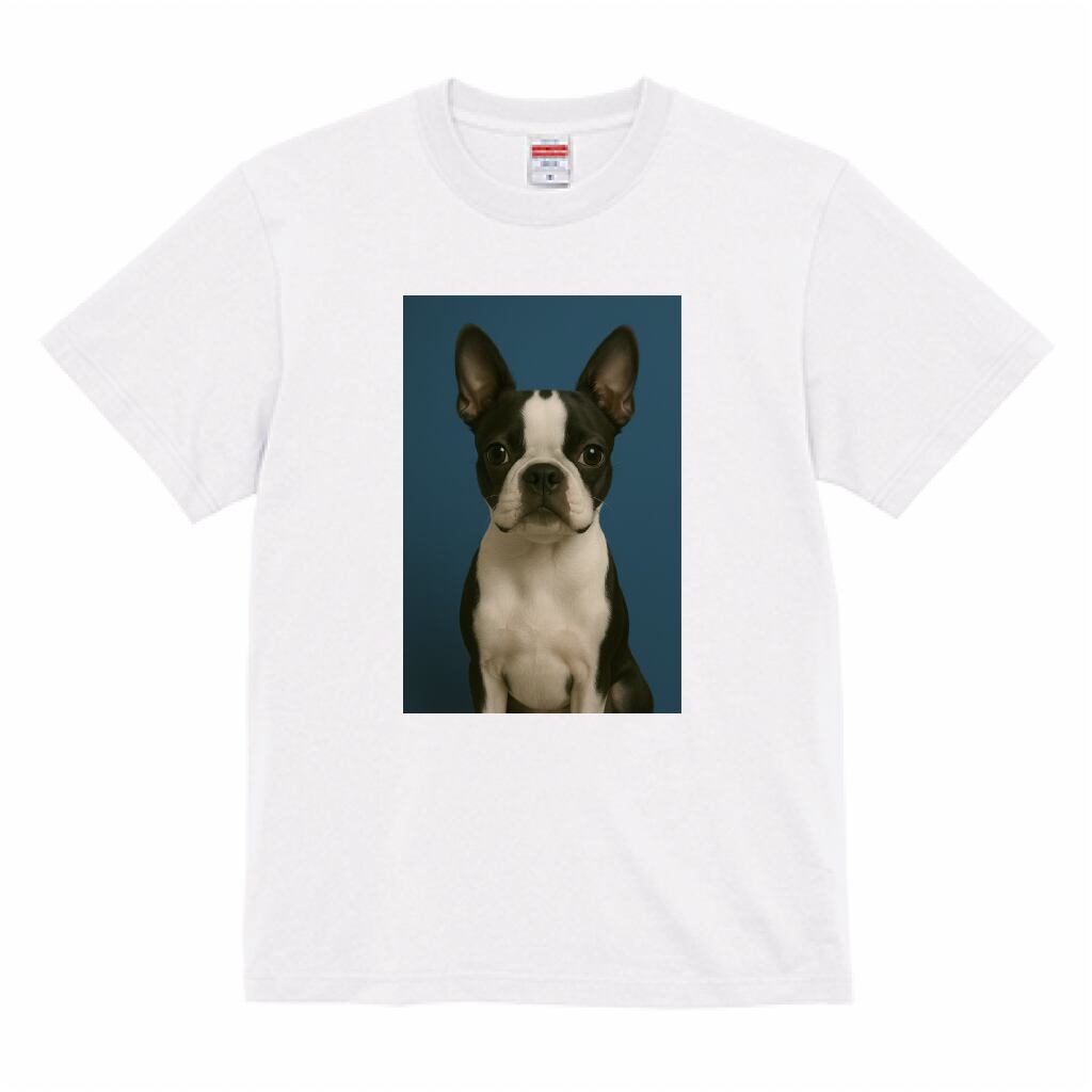 つぶらな瞳にキリッと入ったタキシード柄がトレードマークのボストンテリア。コンパクトな体にユーモアたっぷりの表情を兼ね備えた、元気でフレンドリーなムードメーカーです。おしゃれでちょっぴりお茶目なその魅力を、Tシャツにもぎゅっと詰め込みました。個性派な一枚をお探しの方にぴったりです!